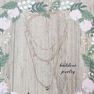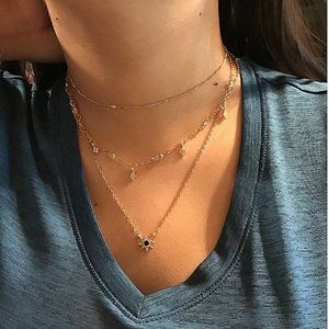 NEW multilayered dainty stars, acrylic gems, and bohemian black sun necklace