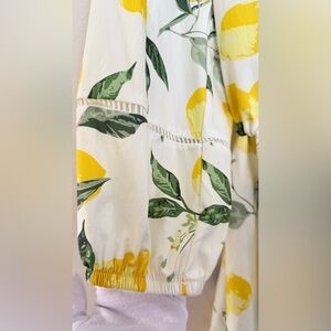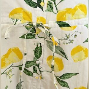 Charming dress featuring a vibrant lemon print with green leaves. Perfect for a fresh, summery look.