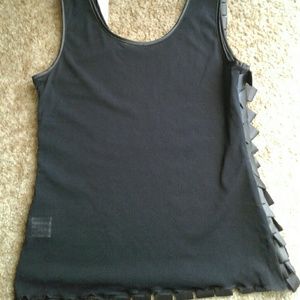 Black tank top that's layered with small flaps...new with tag. Unfortunately it doesn't have the size, but I'm going to guess s-m.