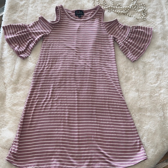 Layered flutter sleeve dress‎ with open shoulder .pink/brown size 7