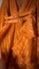 Layered orange satin minidress plunge button front tiered skirt belted waist