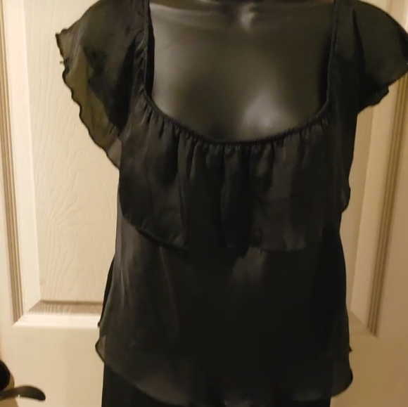 Essentials by Milano long layered silky black top size small could be a dress for someone petite🖤