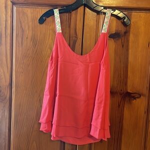 Salmon colored, layered top. Beading on the straps in a geometric pattern. Size extra small.