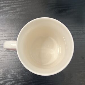 Heart doily design on the body of the mug with plain white handle with plain white interior.