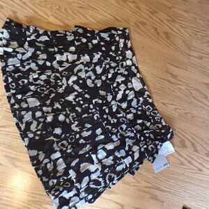 Cute brown & cream colored layer skirt with ruffles, fully lined. Side zipper, washable, NWT. Size 16 by FOCUS 2000. Measurements are as follows: waist 37”, hips 44”, length 19”.