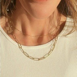 Layering Gold Paperclip Chain Necklace Everyday Necklace Waterproof Jewelry Gift