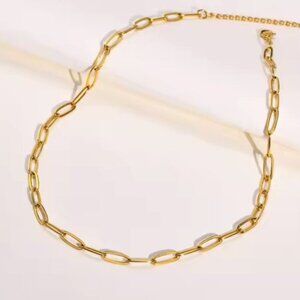 gold chain for stacking trendy paperclip chain necklace everyday waterproof necklace gold jewelry that won’t tarnish sweatproof gold necklace for active women durable gold choker necklace fashion layering chain jewelry gift for minimalists adjustable gold necklace for travel waterproof jewelry for vacation gift for stylish women modern gold jewelry simple elegant gold chain effortless jewelry layering necklace for work or casual outfits long-lasting gold necklace stainless steel gold chain necklace for women