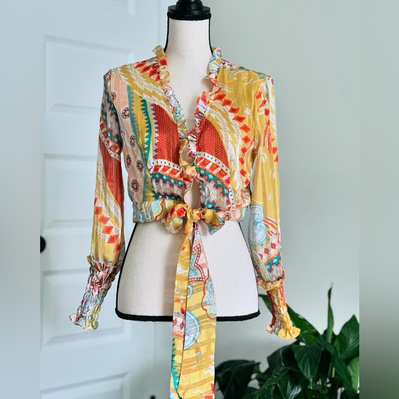 Layering top by Banjul. Beautifully smocked cuffs. Size S; 15” long.