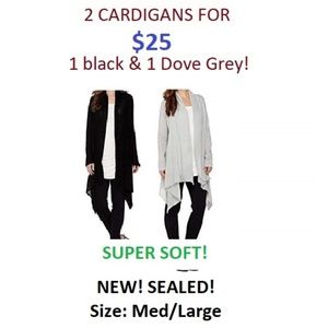 yes you get BOTH cardigans! 1 black and 1 Dove Grey - This is an amazing Deal. They are a size m/l They do have smaller arms but fabric has some give and my arms are average slightly above average size and they fit me perfectly. I am a size 8/10. my upper arm is about 14" around .. fit is no problems for me. the sweaters you will get are SEALED in bags UNOPENED BRAND NEW