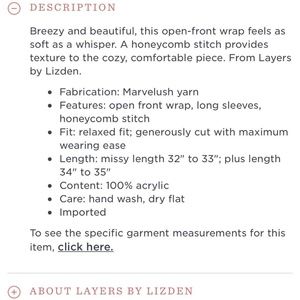 Layers Lizden Whisperlush Open Front Cardigan M/L