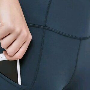 Layers teal work out gym travel Vacay pockets soft ruched running leggings S