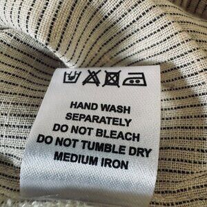 100% cotton cream fine line stripe fabric with thick chocolate stitching and cream detailing down the front.