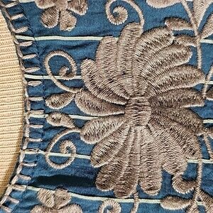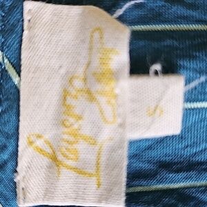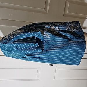 Layerz clothing top.blue with gray stripes beautiful silver enbroidery. Size sm