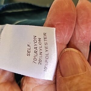 This is such a lovely top and the enbroidery flowers are beautiful. It's a rayon blend. Very good used condition and quality. Size small. pit to pit flat measurement is 18". The sleeves are 5". The top to bottom length is 26". Consider making a bundle and get an even better offer.