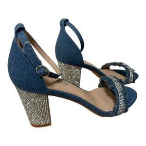 Layla Ikai Women’s High Heels 37.5 Denim Jewel Silver Embellishment