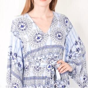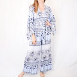 Layla JAASE NWT Blue Moroccan Tile Print Long Sleeve Jumpsuit Size XS Australia