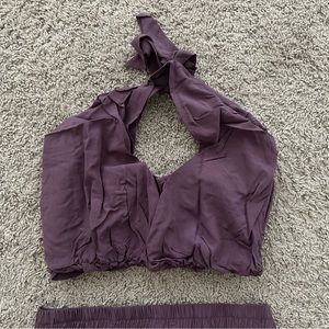 NEW Lyaner women 2 - piece bra top Dark purple Large Slit on the skirt