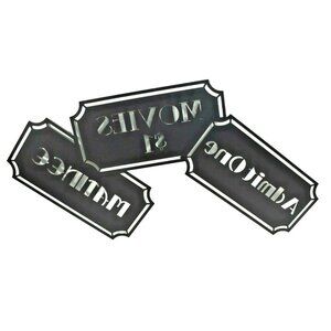 This decorative Lazart "Admit One Movies" metal wall art is a great way to add a touch of Hollywood glam to any living space. Crafted from solid black metal, this 22 x 12 inch piece features a classic "Admit One" movie ticket motif. Perfect for any film fan, this timeless piece will make a great addition to any home or office.