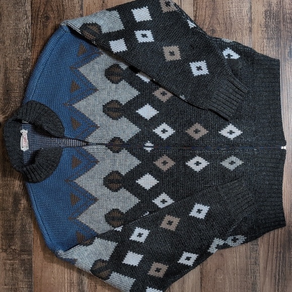 Lazarus Vintage 80's Wool Blend Geometric Full Zip Old Man Sweater Size Large