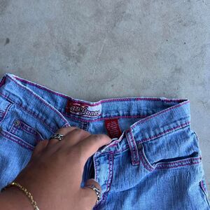 Lazer Jeans y2k pink threaded Short shorts denim womens 5