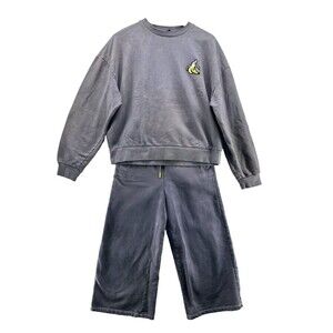 Lazy Oaf Lounge Set 2 Piece Pants Sweatshirt Small Gray Banana Cropped Pants- Elastic Waist