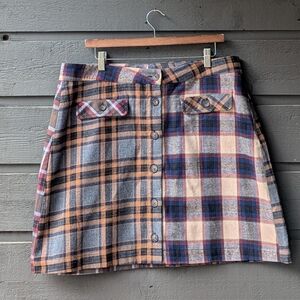 Lazy Oaf Button Up Mini Skirt Patchwork Flannel Plaid Check UK18