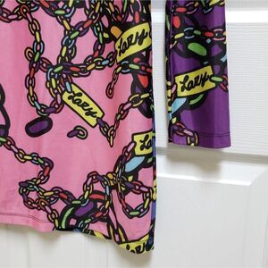 Lazy Oaf Dress Medium Pink Multicolor Chain Logo Bodycon Stretchy Wearable Art