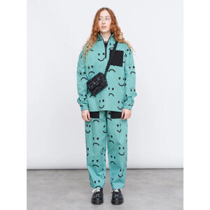 Lazy Oaf Happy Sad Barrel Leg Colorblock Green Cotton Trouser Pants-Size 10/32"
