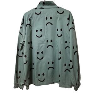 Lazy Oaf Happy Sad Green Colorblock Zip Cotton Track Top Sweater - Size Small