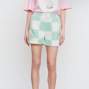 Lazy Oaf limited edition pistachio checkerboard fleece shorts. Side pockets. Size M. 15 1/2” across top laid flat. 13 1/2” rise. 3 1/2” inseam. Excellent pre owned condition