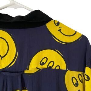 Lazy Oaf London Happy Face Navy Blue Yellow Button Down Shirt One Size o/s