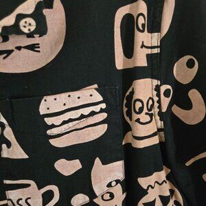 A rare and unique streetwear shirt from Lazy Oaf, featuring a novelty print with cats and dogs. This sustainable cotton shirt in black and blush is perfect for parties.