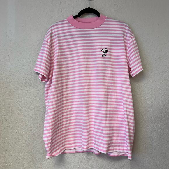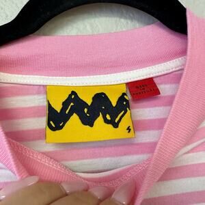 Lazy Oaf X Peanuts Stripe Crew Neck Snoopy Short Sleeve Tee Pink Size Small