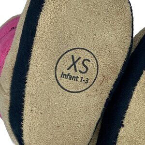 These charming Lazy One infant cowboy booties boast a delightful design with vivid pink and tan hues. The booties feature a cozy interior for little feet, ensuring warmth and comfort. With whimsical embroidery details and a soft, flexible structure, they are ideal for infants who are beginning to explore their surroundings.