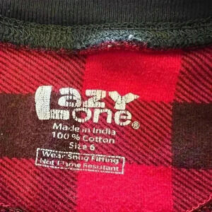 Lazy One Bear Cheeks kids size 6 flame retardant Plaid Onesie Flapjack. Perfect for this holiday season