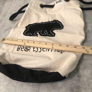 Lazy One Bear Essentials Canvas Drawstring Backpack Bag Natural Black Tote