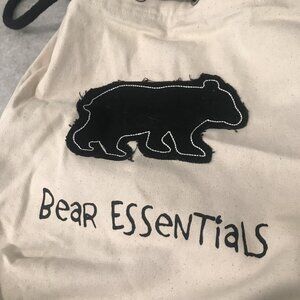Design: "Bear Essentials" text with black bear silhouette raw-edge applique