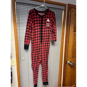 Lazy One “Bear Hugs” Red Buffalo Plaid Union Suit Pajamas – Size S – One-Piece Flapjack PJ