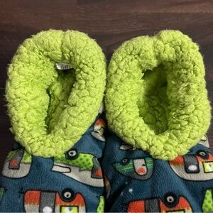 Lazy One Bright Green Fuzzy Slippers with campers pattern Womens shoe size 7-9