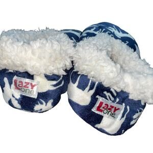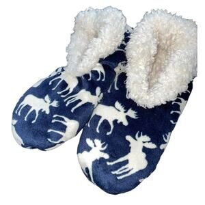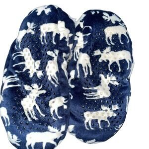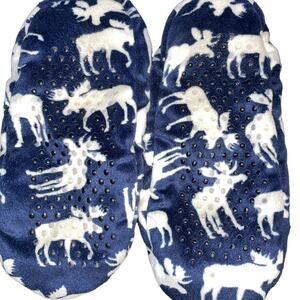 Lazy One Women's Slippers Large / XL 7-9 Classic Moose Fuzzy Feet Non Slip Blue Navy Loungewear