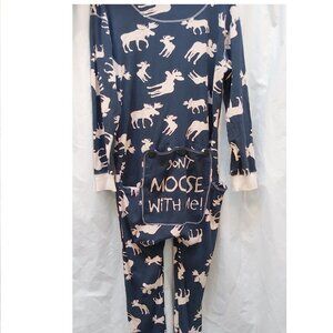Lazy One XL Don't Moose With Me Blue & White 1 Pc Pajama with Trap Door Flapjack