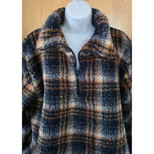 Lazy Sunday Womens Plaid Sherpa Fleece Pullover Jacket Large warm cozy cottageco