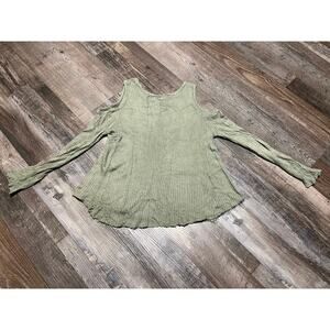 Lazy Sundays military green waffle knit cold shoulder sweater
