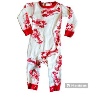 1051. Lazy one lobster pajamas. Size 6 mo. 100% cotton. Adorable pattern and trap door! Does have a small amount of wash wear. no stains, rips, or holes