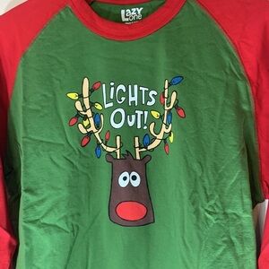 LazyOne Mens Christmas Holiday Pajama Tee Shirt | Rudolph Lights Out - Medium