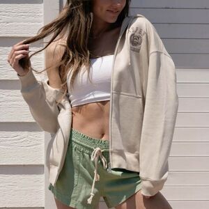Lazy Sunday Aspen Back Embo Zip Up Hoodie - Cream Medium