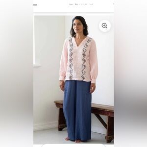 Lazybones Ollie French Linen Indigo Blue Extra Wide Leg Pants. Front Pockets.