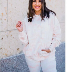 Lazypants Lounge SET Oversized Hoodie & Jogger Pink Tie Dye Watercolor Sz Medium