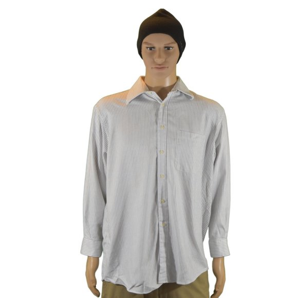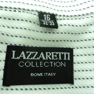 Lazzaretti collection dress shirt with pin strips. Chest is 46 inches. Length is 34 inches. Sleeve length is 32/33 inches. Neck size is 16. A gently used shirt. A great buy for business.
