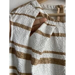 Lbisse Dress Size Medium Sleeveless Fitted Peeka Boo Cutouts White Beige Stripe